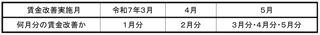 ・ 通常の賃金改善の実施のスケジュールに関わらず、最終の賃金の支払までに、加算額以上の賃金改善を行う必要がある。例えば、サービス提供月の報酬が国保連の審査を経て支払われた後(通常の審査スケジュールでは2か月後。問1-8-1における③のパターンで支払っている場合。)に賃金改善を実施していた事業所が令和7年5月で廃止になる場合、5月に3~5月分の3か月分の賃金改善を行う必要がある(一時金による精算で可。)。