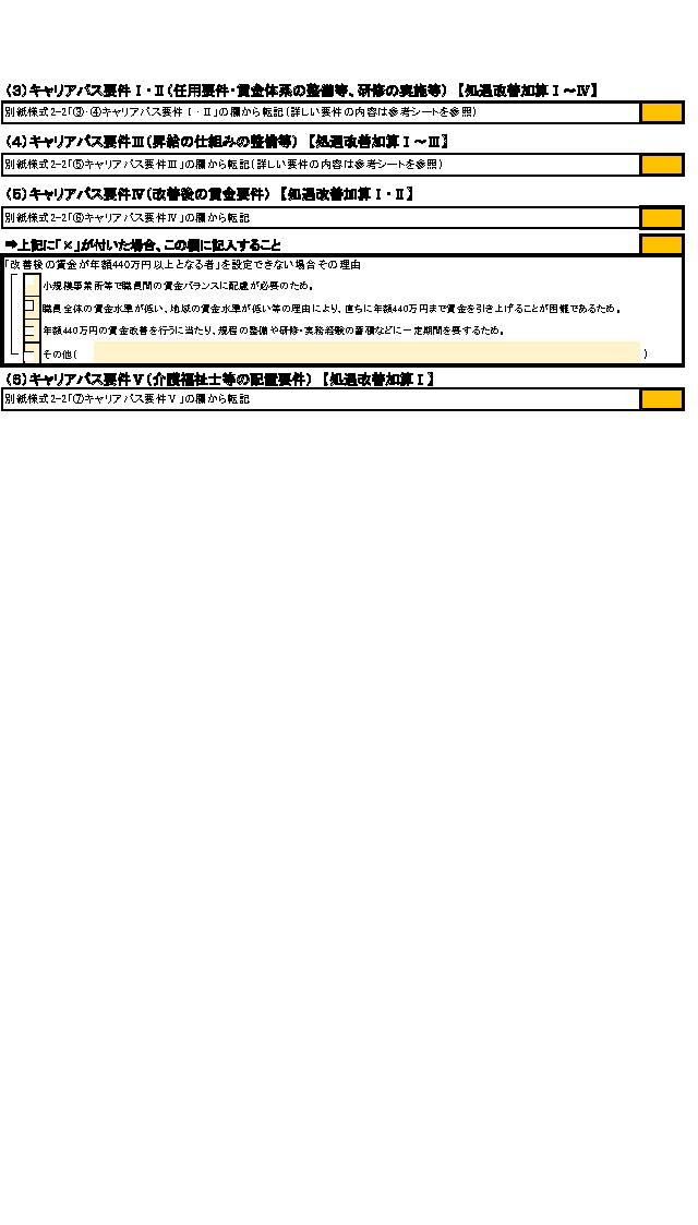 ③ キャリアパス要件ⅠからⅢまでに関する適合状況に変更(算定する処遇改善加算の区分に変更が生じる場合に限る。)があった場合は、キャリアパス要件の変更に係る部分の内容を変更届出書に記載し、別紙様式2-1の2及び3⑴から⑹まで並びに別紙様式2-2を提出すること。
