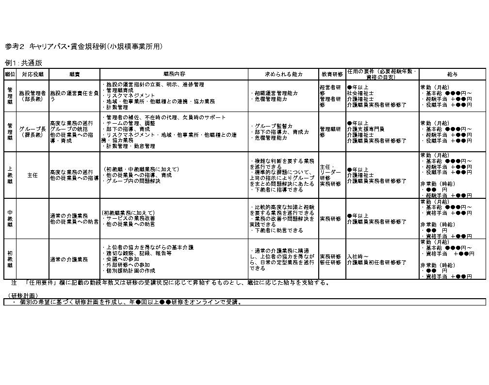 ただし、常時雇用する者の数が10人未満の事業所等など、労働法規上の就業規則の作成義務がない事業所等においては、就業規則の代わりに内規等の整備・周知により上記二の要件を満たすこととしても差し支えない。また、令和7年度においては、処遇改善計画書において令和8年3月末までに上記一の仕組みの整備を行うことを誓約した場合は、令和7年度当初からキャリアパス要件Ⅲを満たしたものと取り扱うこととして差し支えないこととする。当該誓約をした場合は、令和8年3月末までに当該仕組みの整備を行い、実績報告書においてその旨を報告すること。
